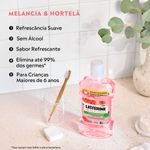 O Enxaguante Bucal Listerine Melancia & Hortelã Sem Álcool é uma solução antisséptica desenvolvida para proporcionar uma limpeza bucal completa e refrescante. Combinando a refrescância suave da melancia com o frescor da hortelã, este enxaguante elimina até 99,9% dos germes que causam mau hálito, placa bacteriana e gengivite, garantindo uma proteção de 24 horas quando usado a cada 12 horas. Ideal para complementar a escovação, ele alcança áreas que a escova e o fio dental não conseguem, proporcionando um cuidado bucal eficaz e uma sensação de frescor prolongada.