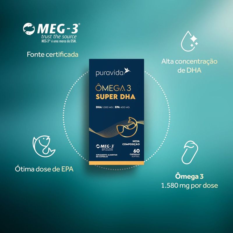O Puravida Ômega 3 Super DHA é um suplemento de alta qualidade formulado com óleo de peixe rico em ácidos graxos essenciais. Sua composição contém uma elevada concentração de DHA (Ácido Docosaexaenoico), um nutriente fundamental para a saúde cerebral, cardiovascular e ocular.